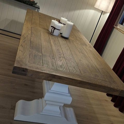 Veldig pen bordplate, understell er pusset ned slitt men kan fint males opp igjen.