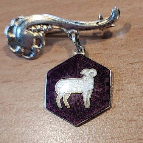 Vintage brosje i emalje og sølv
