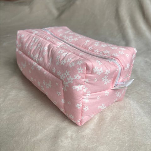 Den åpnes med en glidelås som går rundt hele mappen. Glidelåsen går skjevt fra hjørne til hjørne, noe som gir god oversikt. Når toalettmappen åpnes er det et rom delt med en glidelåslomme. I det ene rommet finnes en liten lomme med glidelås og i det andre 2 lommer med strikk øverst. Toalettmappen har et bærehåndtak på toppen.