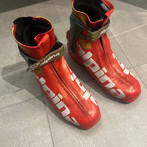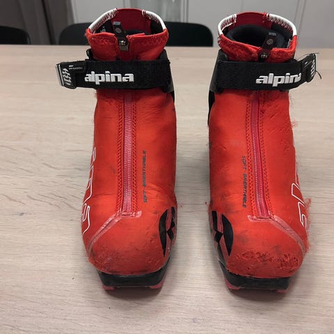Brukt Alpina combistøvel racing Jr str 35. Ikke slitasje på helkappe og ellers i god stand.