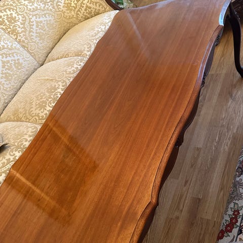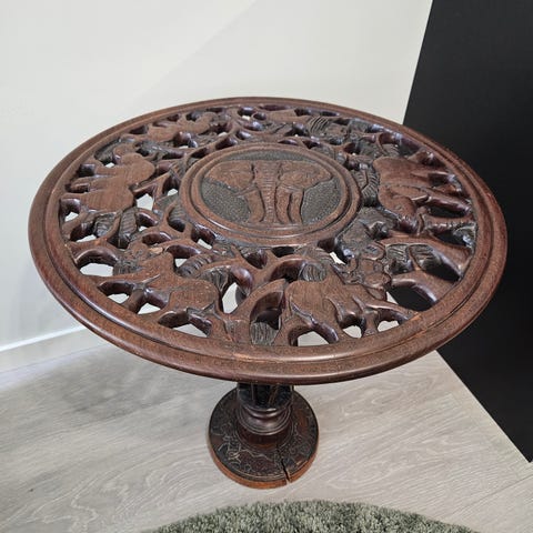 Stabil konstruksjon, tungt og kvalitetsmessig langt bedre enn moderne spon/MDF-bord. Passer godt i stue med klassisk eller tradisjonell stil.