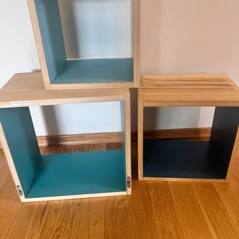 Håndlaget bokhylle i eik til barn.