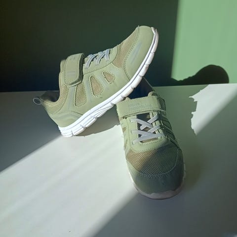 Lager 157 barnesko for unisex i størrelse 35. Skoene har en kombinasjon av hvitt og beige materiale, med gummisåle. Egnet for daglig bruk.
