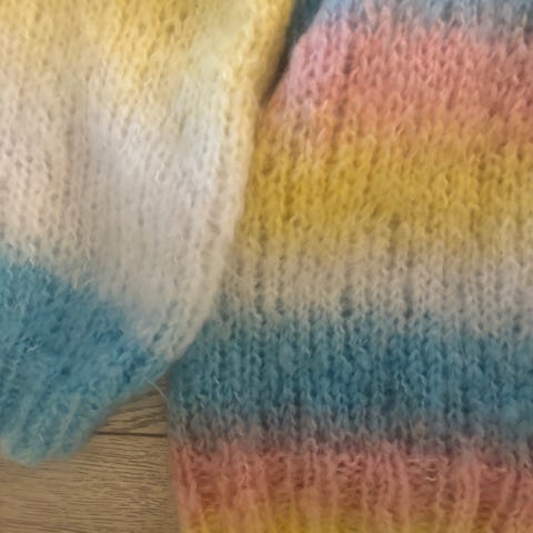 Helt ny, hjemmestrikket genser strikket med drops air 💙🤍