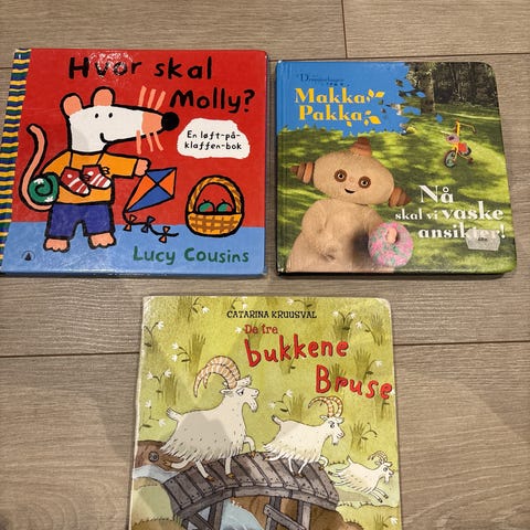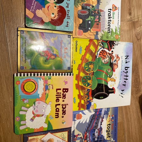 Samling av barnebøker med ulike temaer og fargerike illustrasjoner. Passer for små barn og tidlig lesetrening.