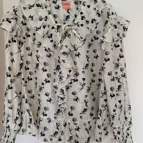 Gossia bluse i blå farge, størrelse S. Blusen har elastiske detaljer ved ermer og hals, med en løs passform.