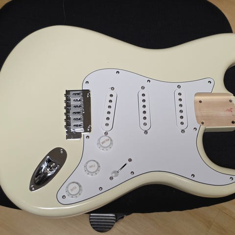 Mangler en liten plastknott på pickup-velgeren, men det har ingen praktisk betydning. Pot-knappene kunne vært finere.