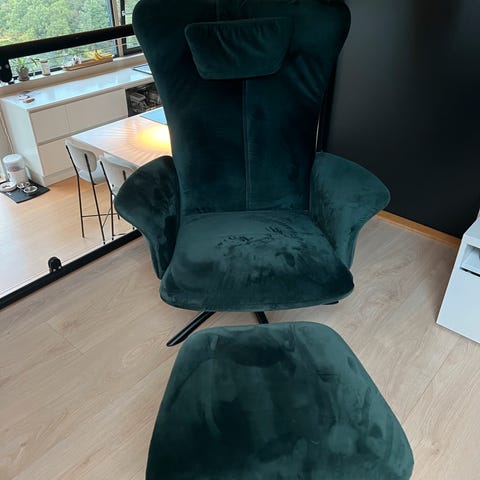 Air lenestol med fothviler, nesten som ny