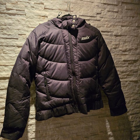Helsport dunjakke for damer - en mellommodell mtp varmeegenskaper. Er noen år, men hel og ren. 2-veis glidelås som fungerer fint. Mål på bilder. Den er nylig vasket og tromlet med tennisballer
