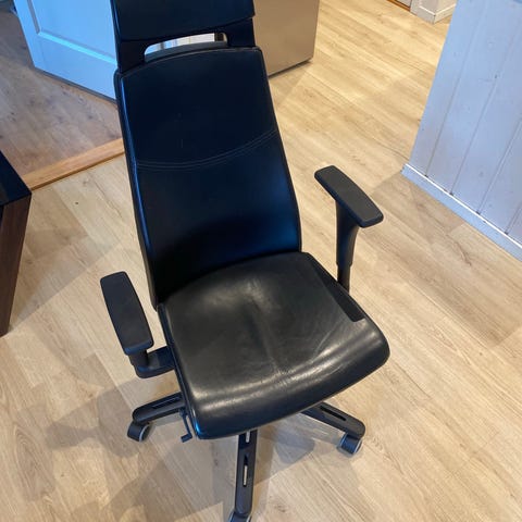 MERK: GÅ TIL LENKE UNDER FOR Å SE NØYAKTIG MÅL OG INFORMASJON. God kontorstol for de som ønsker å tilpasse hvor mye helling det er på ryggen av stolen. Veldig pent brukt, har ikke hatt noen problemer med den. Grunnen for at jeg selger den er lite plass. Må hentes, for stor for å sendes.