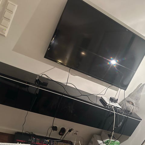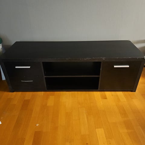 Godt brukt TV benk, litt skader, bør males/flikkes.