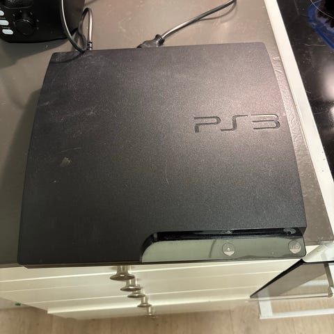 PlayStation 3 med kabler men uten kontroller selges til bud over 400kr