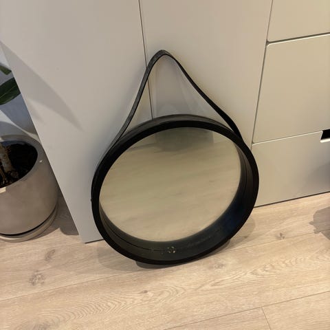 Rundt speil med svart ramme fra IKEA