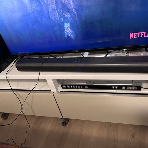 Ikke det peneste bordet i verden, men praktisk når det ikke er fast plass til en tv noe sted.