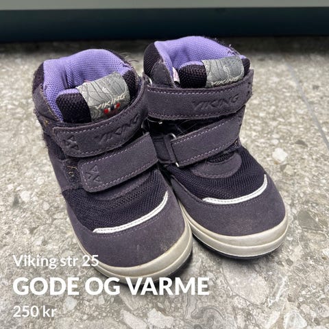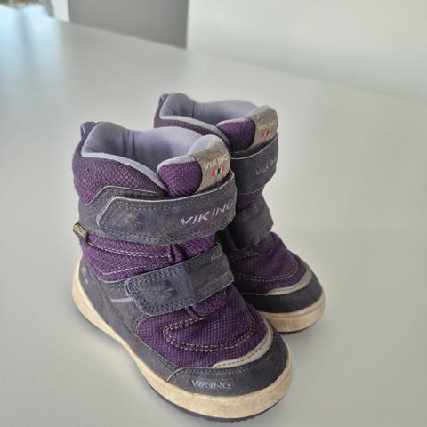 Viking barnesko i størrelse 25 for jente. Skoene er lilla med gule detaljer og har borrelås for enkel justering. Egnet for barn og gir komfort og støtte.