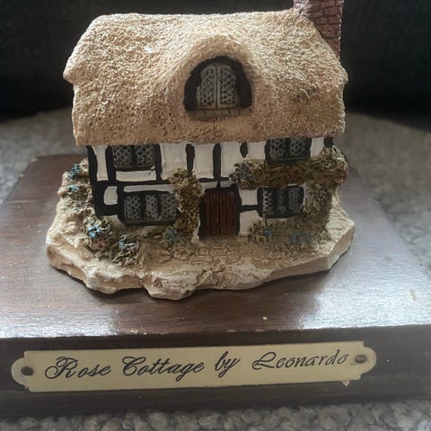 Miniatyrhus bestående av en kirke og et hus laget i plast.Kirken har detaljer som tårn og inngangsparti, mens huset har skråtak og vinduer. Passer til dekorasjon eller samling.