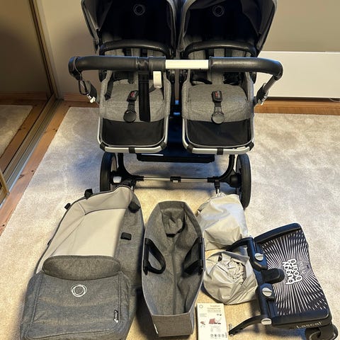 Selger en Bugaboo Donkey 3 søskenvogn i sort aluminium med grey melange trekk. Veldig pent brukt.