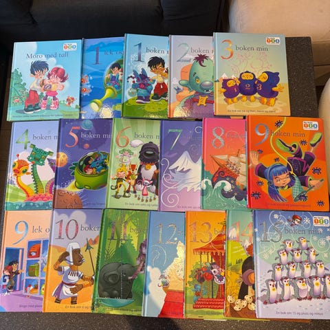 Samling barnebøker ulike titler og forfattere