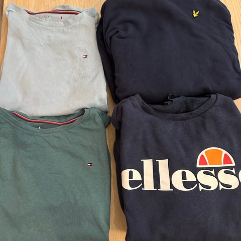 Gant genser str. S: 300, Ralph Lauren hettegenser XS: 700, Ralph Lauren joggebukse 300 i str. S, t-skjorter: 100 kr. 14/15, Herregenser: 100 kr, shortser 100 kr. Pr. Stykk.