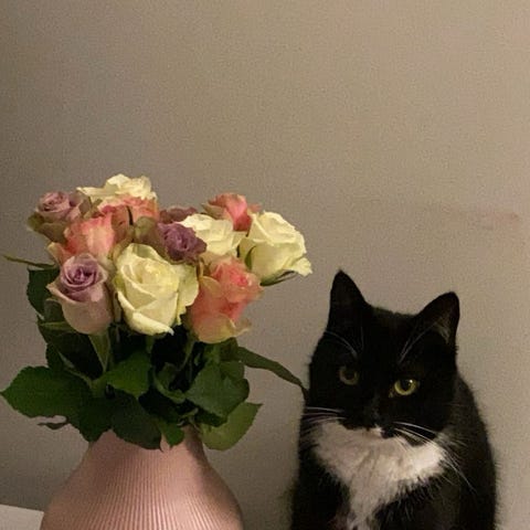 Voksen hun katt på 5 år , kjærlig og tillitsfull. Maler så snart du stryker henne, liker å få kos og oppmerksomhet.