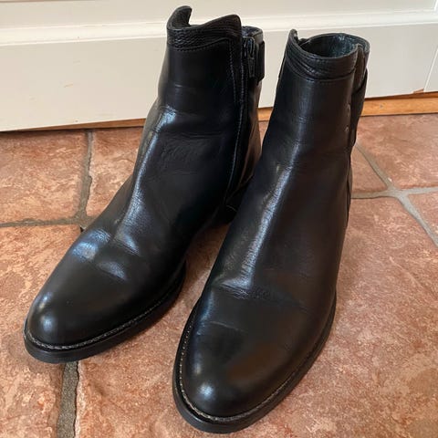 Cabor sko i rødt semsket skinn, størrelse 38. Støvletter med glidelås på innsiden, middels hælhøyde.