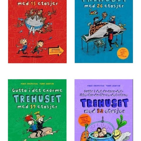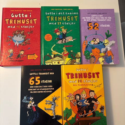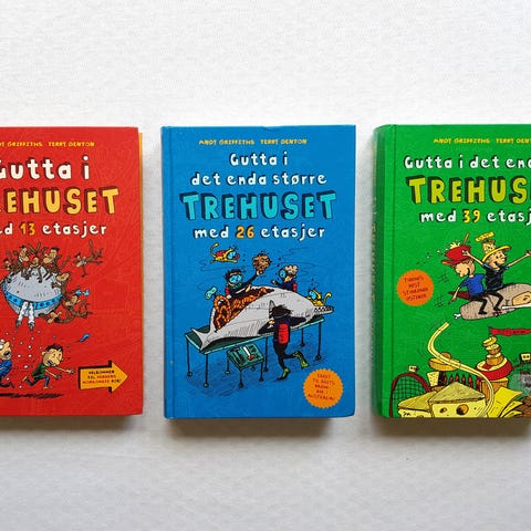 Tre bøker om Gutta i trehuset selges for kr 50,- per stykk. Bøkene er illustrert og skrevet av Andy Griffiths og Terry Denton.