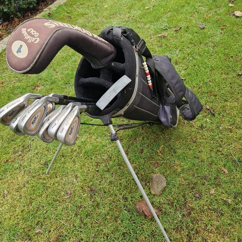 Et nybegynner golfsett med 10 køller inkludert, fairway woods, jernkøller (P, S, 5, 6, 7, 8, 9), og putter + 3'er jern. Settet leveres med en fin svart golfbag. Passer for golfspillere som ønsker et enkelt sett med god tilgivelse for nybegynnere.