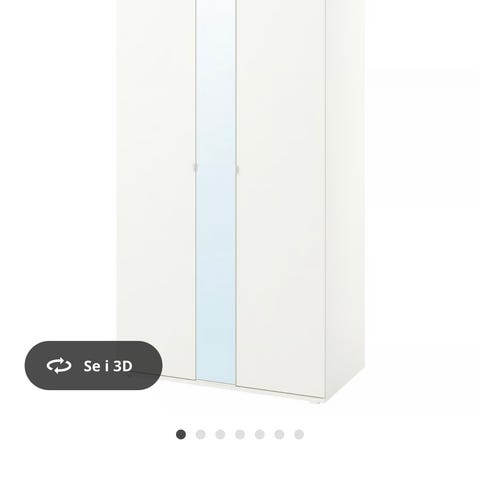 Skap/garderobe med skyvedør og skuffer nederst. Noen bruksmerker. Skapet selges demontert. Skruer følger med.
