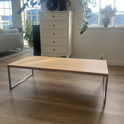 Nyrestaurert Bolia Como salongbord hvitpigmentert oljet eik med ben av rustfritt stål. Nylig slipt og oljet slik at det nå fremstår omtrent som nytt.