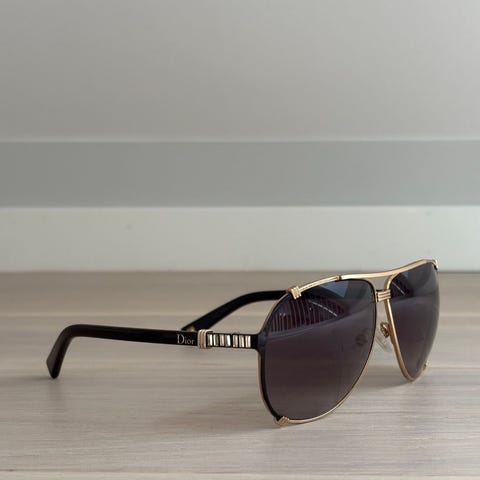 Miu Miu Dame solbriller med svart ramme og mørke glass. Solbrillene har et firkantet design og leveres med etuiet i rosa fløyel. Modell og størrelse er ikke oppgitt.