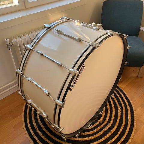 Settet er utstyrt med kvalitetsskinn på alle trommer, i god stand. Tomholdere og bein til gulvtammer følger med.