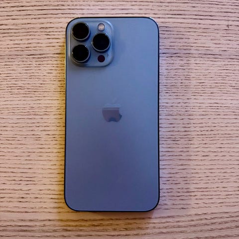 iPhone 13 Pro Max 256 GB, batterikapasitet 89%. Den er i god stand utenom at skjermen er knust helt øverst (over kameraet). Følger med 2 helt nye skjermbeskyttere og 1 deksel.