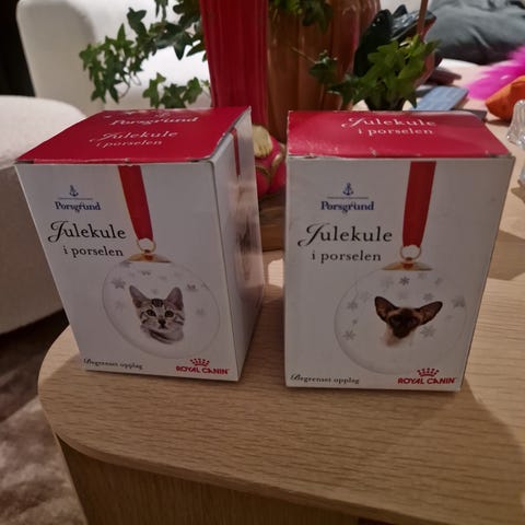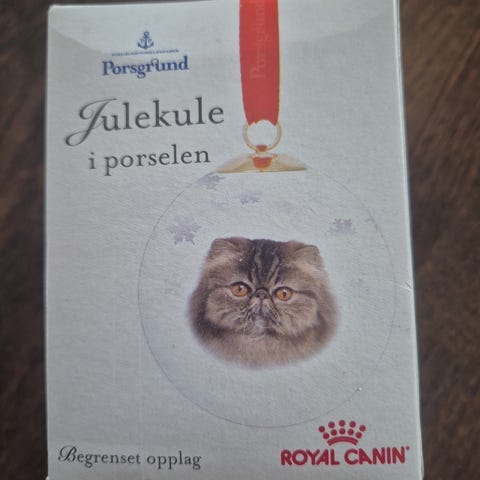 Porsgrund Julekule i porselen med motiv av katt,siameser.Julekulen er laget i porselen og har et rødt bånd for oppheng. Passer til dekorasjon i juletiden.
