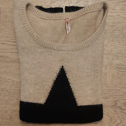 Genser i angoraull, svart farge, størrelse XS,S,M for kvinner. Laget av myk angoraull med strukturert strikkemønster. Passer til hverdagsbruk og gir varme og komfort.