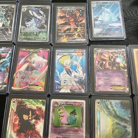 De fleste kortene er i fin stand og alle kortene er sleevet