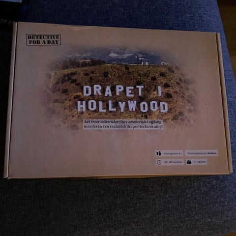 Detective for a Day Drapet i Hollywood brettspill. Spilt det en gang og alt er lagt tilbake i konvoluttene.