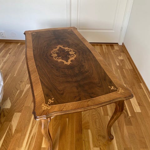 Pent lavt bord. Noen bruksmerker i bordplaten, men ikke sjenerende.