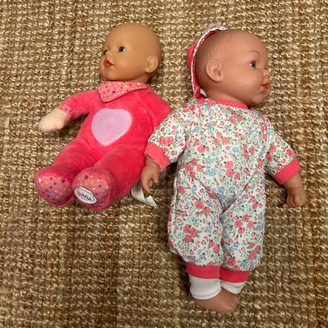 To dukker med klær og utstyr.