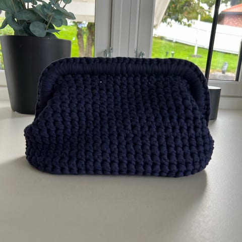 Lager håndlagde clutcher på bestilling, kan hekle i alle farger med og uten håndtak som på bildene, også med tykt garn og vanlig garn med fór inni💞 alle clutchene på bildene er str 18x9🥰 om du ønsker en større kan jeg også lage det.