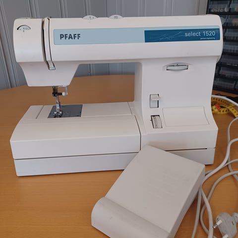 Pfaff 360 Automatic. Dette er symaskina som mor mi hadde i 50-60 år. Den blei kjøpt ny på sekstitalet. Dette er maskinen som er kjend som ein arbeidshest. Desse var laga for å vare, og denne kvaliteten er desverre ikkje noko vi ser på produkt laga i vår tid. Det blei tatt service på denne for få år sidan og etter det har den ikkje vore i bruk. Det kosta 1 000 kroner. Må nesten ha igjen for den pluss 500 til. Då blir prisen 1 500 altså. Hentast i Volda sentrum. Kan i verste fall sendast. PS: Pedalen er ikkje med på bilda, men den finst.