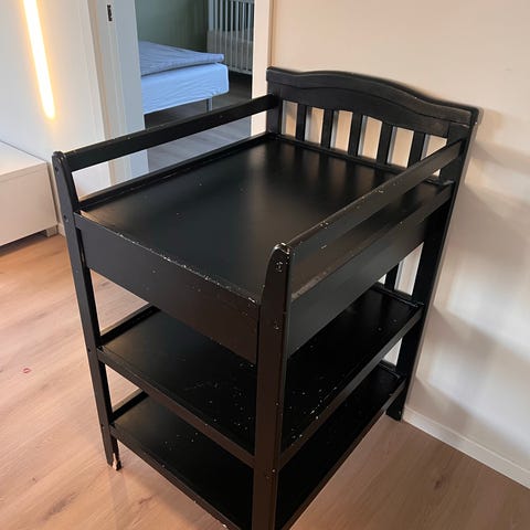 IKEA barnemøbel hvit stellebord med flere hyller og hjul for enkel flytting. Laget i hvitt materiale, egnet for barnerommet.