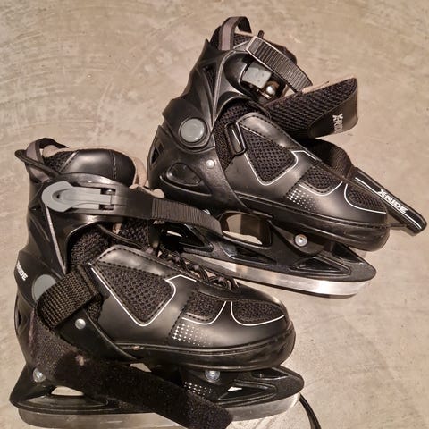Begge parene er av merket CCM Tyke. De er godt brukt, med litt rust på meiene. Er mange turer igjen i dem på føtter som passer.