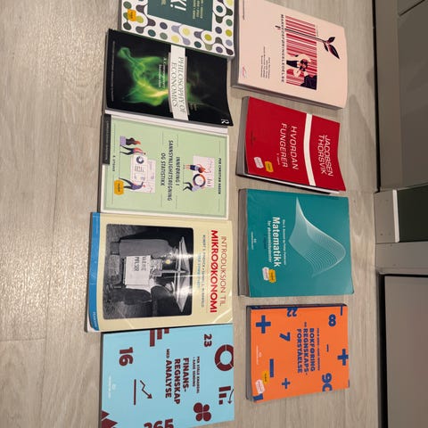Pensumbøker for økonomifag. Kjøpt nye høsten 2025 og brukt svært lite.
