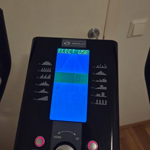 Skjermen har flere visningsmuligheter og viser blant annet motstandsnivå, distanse og watt. Man får også muligheten til å legge inn opptil 4 brukere. Der kan man legge inn kjønn, alder, høyde og vekt for mer nøyaktig kaloritelling.