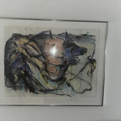 Stort maleri selges grunnet flytting og plassmangel. Ukjent kunstner. Ingen synlige bruksmerker eller skader. Må hentes innen torsdag 8. januar eller etter 22. januar.