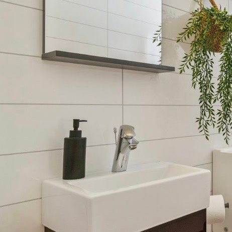 Baderomsservant med blandebatteri og dimbart speil