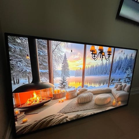 Fungerer som den skal. Fjernkontroll og LED-lys bak TV følger med men ikke stativ.