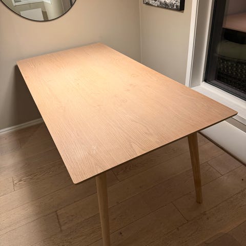 Fremstår som veldig pent brukt, selges pga. flytting. Det er et kjempefint spisebord, hvitoljet eikefiner med eikeben.