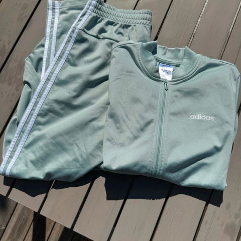 Adidas treningsdress for dame i størrelse M, grå farge.