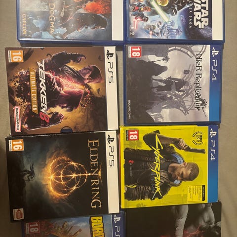 Bra spill og 3 kontroller, 2 er u-originale men funker som originalt. Disse er halv pris av den originale. Alle spill funker som nye. Går over til ps5 etter hvert så selger av litt av ps4 samling. Samlet pris for alt er 1600,- ellers står priser på bildene